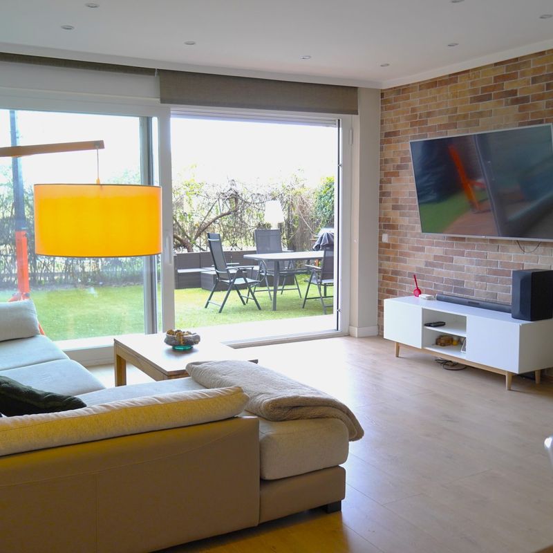 It is fully equipped and features a bedroom with an en-suite bathroom, a spacious living room, kitchen, dining room, parking space, and a wonderful 30-square-meter private garden. All utilities are included, notably high-speed WIFI.
