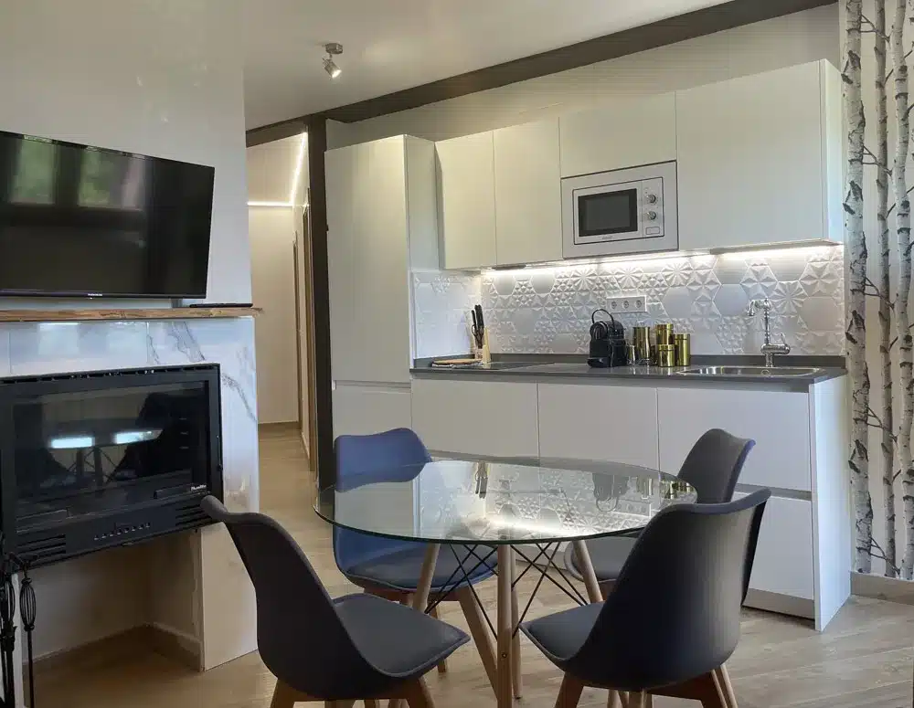 The apartment features privileged views of the Biosphere Reserve and an exquisite eclectic decoration—a mix of modern and vintage—with a ramp entrance and accessibility for people with disabilities. It has two bedrooms, one with a large 1.50m double bed and, right next to it, a spectacular freestanding Victorian-style 2-seater bathtub to enjoy alone or as a couple. The other bedroom has 2 single beds that can be joined. The apartment has a living-dining room with a fireplace. The kitchen is fully equipped, and the bathroom is handicap accessible with a shower. The apartment features central heating, a 32-inch TV, memory foam mattresses, and fiber optic internet access.