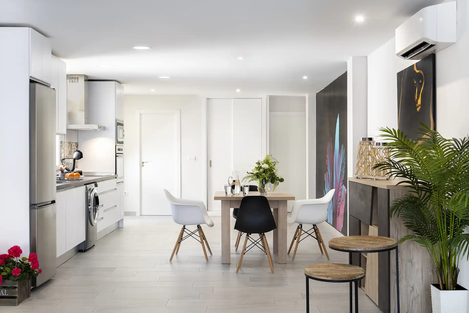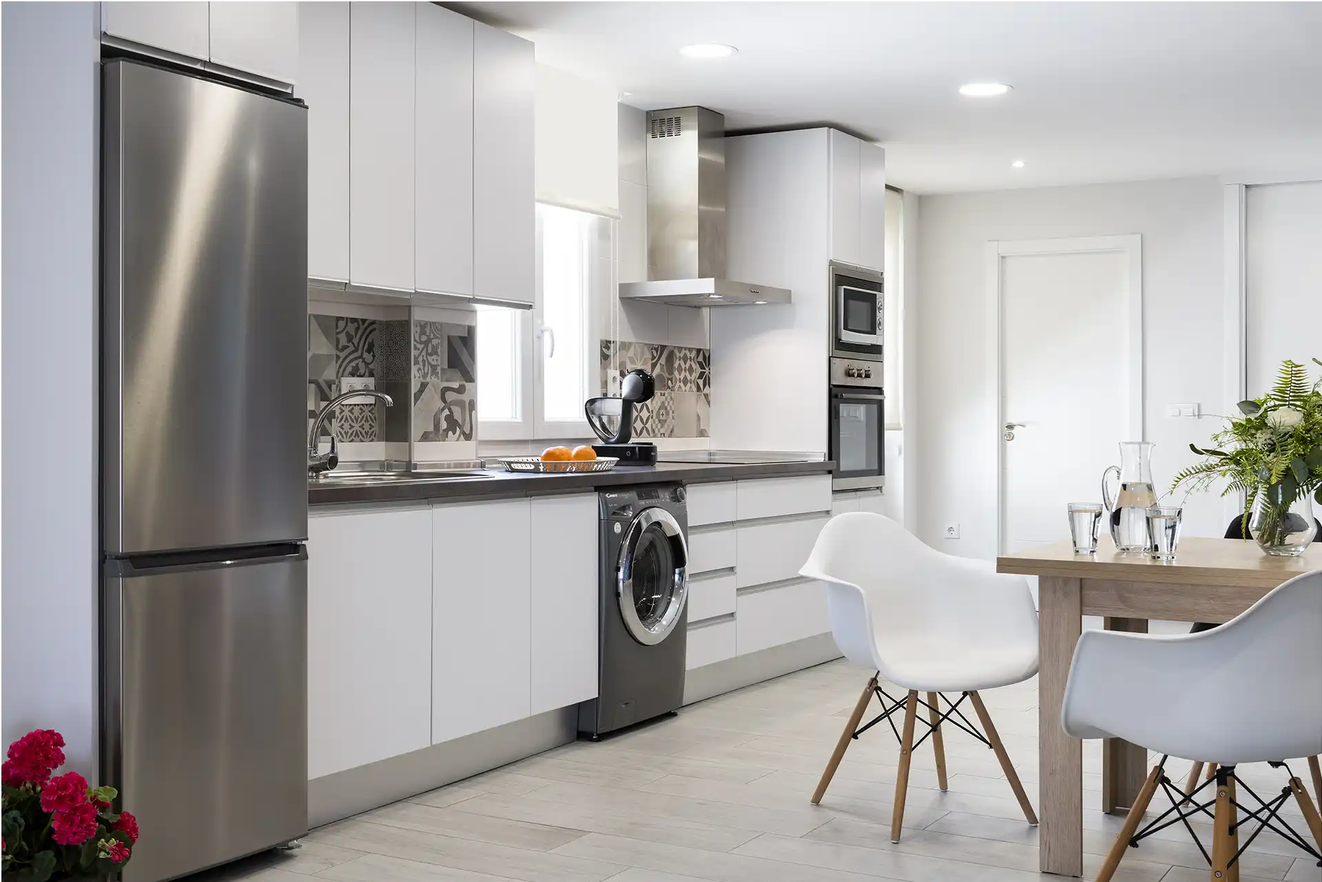Frigorifico, microndas, lavadora, virocerámica y utensilios